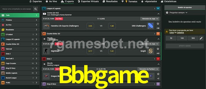 O Bbbgame oferece uma grande seleção de opções de apostas em e-sports com probabilidades competitivas